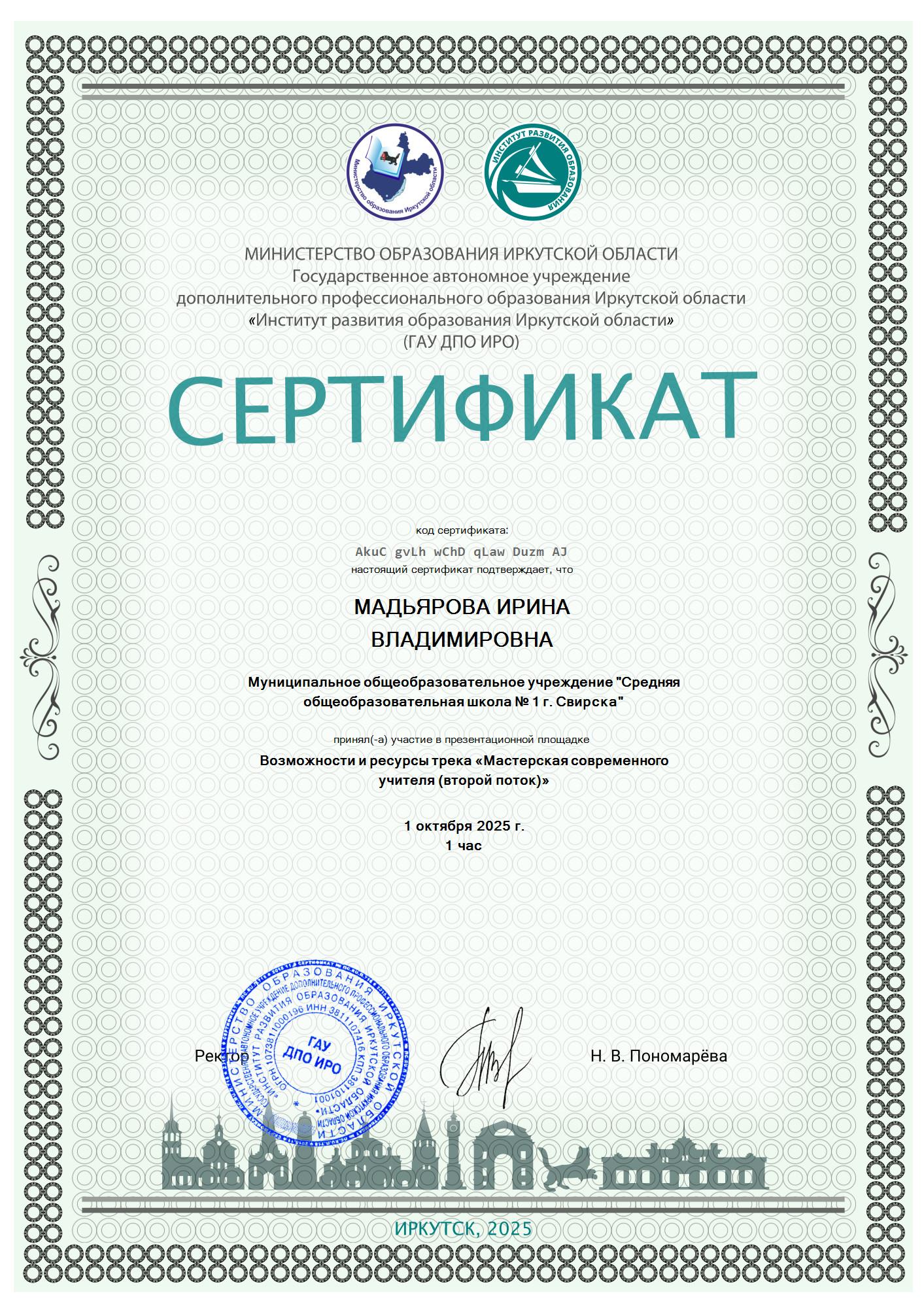 Презентационная площадка "Возможности и ресурсы трека "Мастерская современного учителя", в объёме 1 час